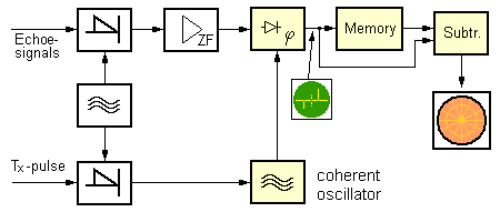 the phase comparison of the echoes received by several pulse periods (pulse-